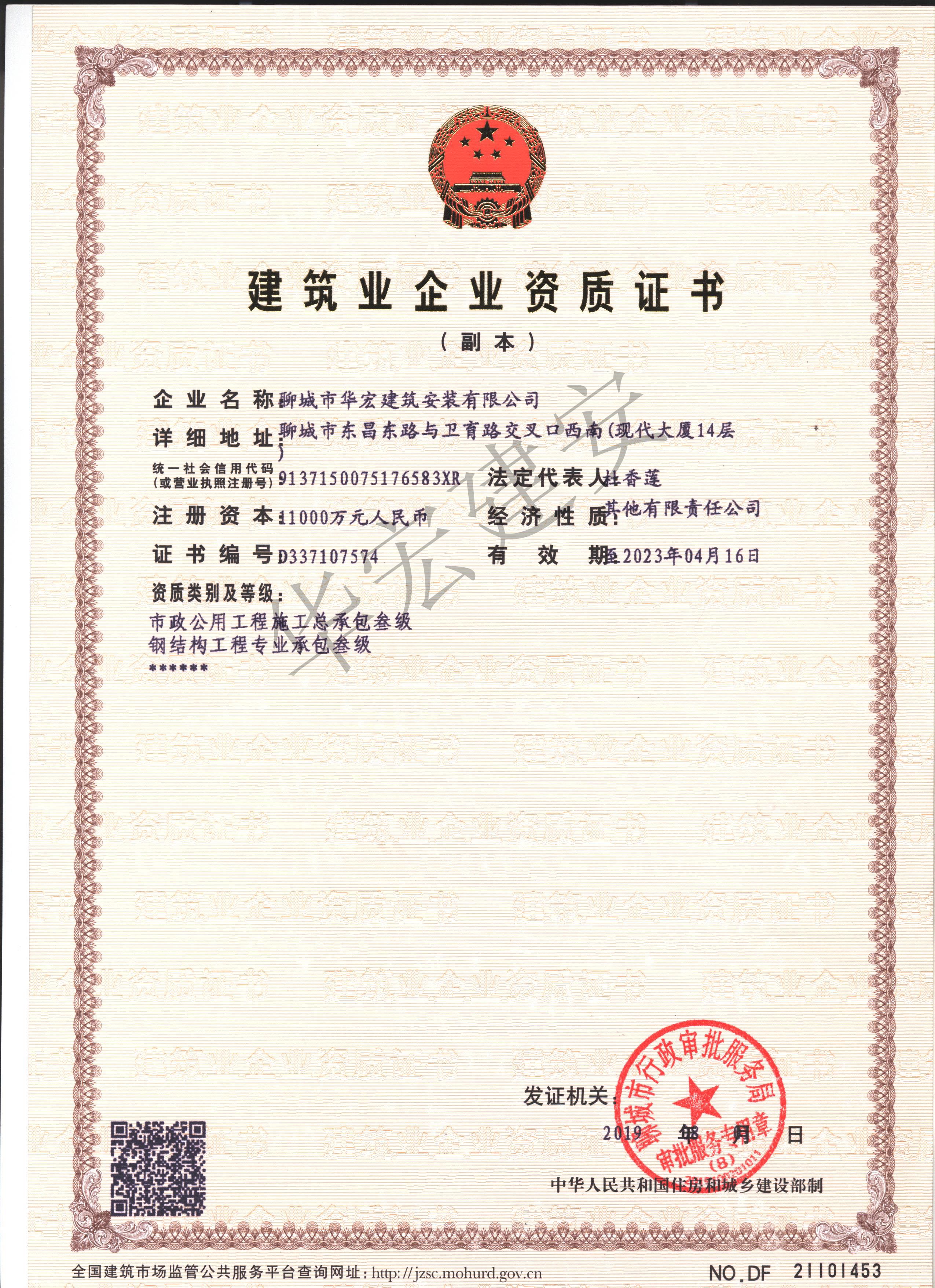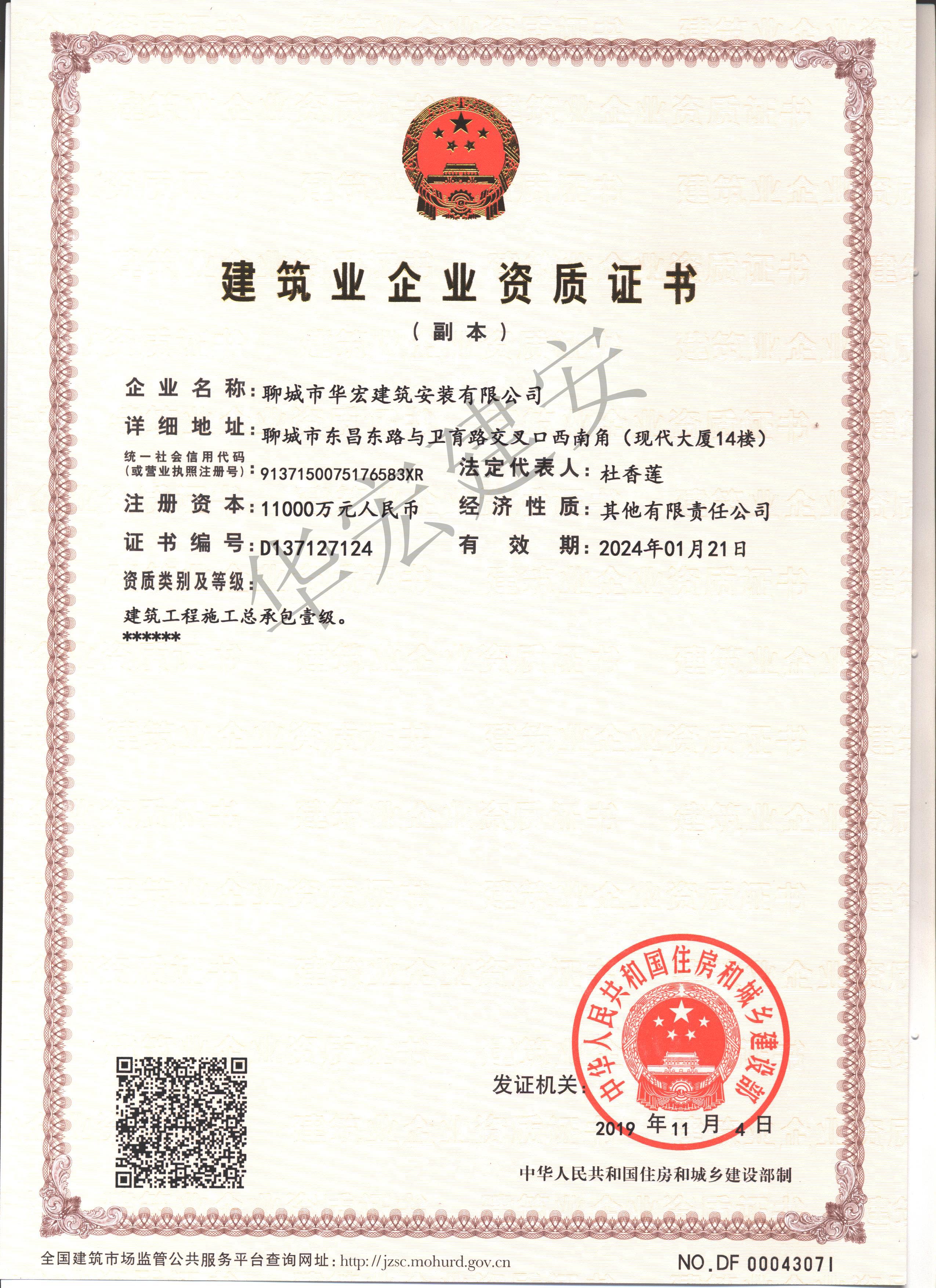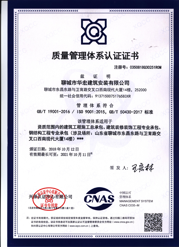 聊城市華宏建筑安裝有限公司成立于2002年5月,公司自2002年成立以來,不斷發(fā)揚 “敬業(yè)修身 打造精品 開拓創(chuàng)新 弄潮勇進”的創(chuàng)業(yè)精神,始終遵循“以質(zhì)量求生存、靠精品創(chuàng)品牌、憑信譽贏市場”的宗旨,認(rèn)真奉行“科學(xué) 高效 一流”的質(zhì)量方針